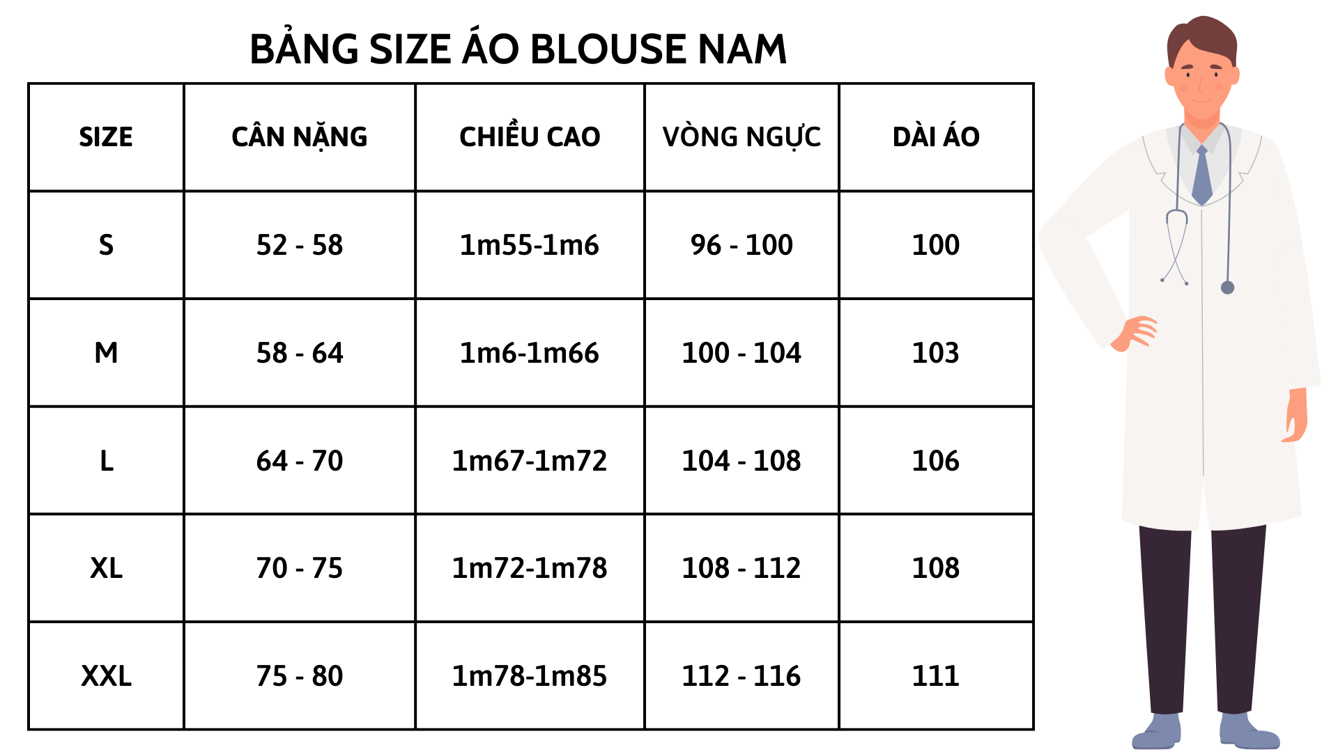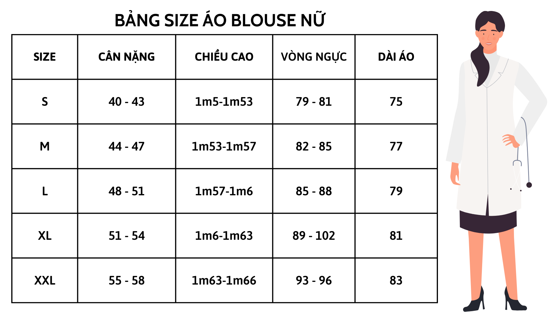 • Bảng size đa dạng, may theo thông số size quy chuẩn hoặc theo số đo của khách
