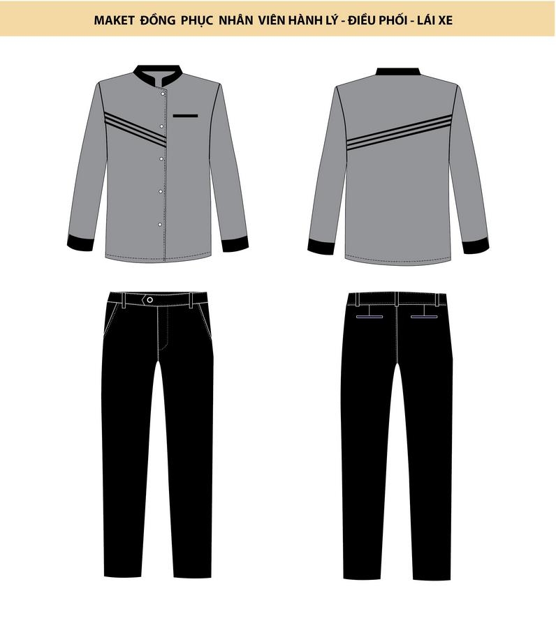 Mẫu đồng phục 01 được thiết kế đơn giản nhưng vẫn nổi bật với cổ đứng hiện đại và vạt áo chéo tinh tế, tạo sự chuyên nghiệp, gọn gàng cho nhân viên hành lý, điều phối và lái xe.