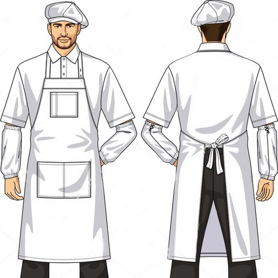 Tạp dề: Màu trắng, chống bám bẩn, tiện dụng khi chế biến thực phẩm.